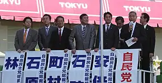 a. ^ The Nippon Kaigi is not a political party but a non-government organization and lobbying group.