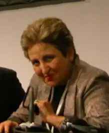 Shirin Ebadi (Persian: شيرين عبادى, romanized: Širin Ebādi; born 21 June 1947) is an Iranian Nobel laureate, lawyer, writer, teacher and a former judge and founder of the Defenders of Human Rights Center in Iran. In 2003, Ebadi was awarded the Nobel Peace Prize for her pioneering efforts for democracy and women's, children's, and refugee rights. She was the first Muslim woman and the first Iranian to receive the award.[4]