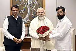 In late June 2022, Eknath Shinde, a senior Shiv Sena leader, and the majority of MLAs from Shiv Sena joined hands with the BJP.[51][52][53] Governor Bhagat Singh Koshyari called for a trust vote, an action that would later on be described as a "sad spectacle" [54] by Supreme Court of India, and draw criticism from Political Observers.[55] Uddhav Thackeray resigned from the post as chief minister well as a MLC member ahead of no-confidence motion on 29 June 2022.[56] Shinde subsequently formed a new coalition with the BJP, and was sworn in as the Chief Minister on 30 June 2022.[57] Uddhav Thackeray filed a lawsuit with the Supreme Court of India claiming that Eknath Shinde and his group's actions meant that they were disqualified under the anti-defection law, with Eknath Shinde claiming that he has not defected, but rather represents the true Shiv Sena party.[58] The case is currently being heard by Supreme Court of India.[58][59] The parties split into two factions: Balasahebanchi Shiv Sena led by Shinde and Shiv Sena (Uddhav Balasaheb Thackeray) led by Thackeray.