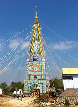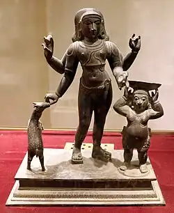 An example of assimilation took place in Maharashtra, where a regional deity named Khandoba is a patron deity of farming and herding castes.[67] The foremost center of worship of Khandoba in Maharashtra is in Jejuri.[68] Khandoba has been assimilated as a form of Shiva himself,[69] in which case he is worshipped in the form of a lingam.[67][70] Khandoba's varied associations also include an identification with Surya[67] and Karttikeya.[71]