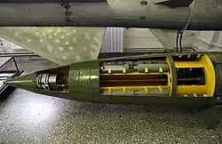 When World War I began the United States also had what it referred to as the "Ehrhardt high-explosive shrapnel" in its inventory.[17] It appears to be similar to the German design, with bullets embedded in TNT rather than resin, together with a quantity of explosive in the shell nose. Douglas Hamilton mentions this shell type in passing, as "not as common as other types" in his comprehensive treatises on manufacturing shrapnel[18] and high-explosive shells[19] of 1915 and 1916, but gives no manufacturing details. Nor does Ethan Viall in 1917.[20] Hence the US appears to have ceased its manufacture early in the war, presumably based on the experience of other combatants.