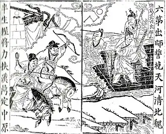A Qing dynasty illustration of a battle between Wei and Shu at the banks of the Wei River. Many battles were fought between Shu and Wei in the Three Kingdoms period.