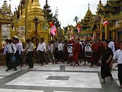 Protesters at Shwedagon Pagoda in Yangon