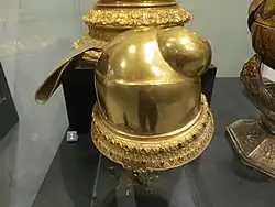 Gold headdress belonging to Queen Shin Sawbu. It was excavated by labourers when building barracks on the site of an old pagoda east of the Shwedagon Pagoda in 1855 and is now in the Victoria and Albert Museum