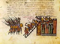 Image depicting the Byzantine army landing in Sicily commanded by George Maniaces