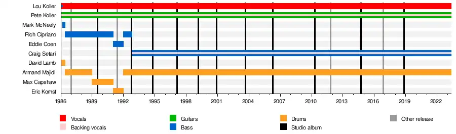 - Lou Koller – lead vocals (1986–present), bass (1986)[9]