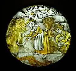 A serrated sickle was used for harvesting wheat, the ears being held bunched up in the free hand as described above. After this the straw was cut with a scythe. Oats and barley on the other hand were simply scythed. The reason for this is that wheat straw, unlike that of oats or barley, whose softer straw was suitable only for bedding or fodder, was a valuable crop, used for thatching, and subjecting it to the battering of a flail would have rendered it useless for this purpose.