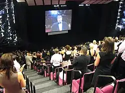 Sicko premiered on May 19, 2007, at the 2007 Cannes Film Festival, receiving a 17-minute standing ovation[9] from 2,000 people at the Grand Theatre Lumiere.[10] The North American première of Sicko was held in London, Ontario (where some scenes from the movie were filmed), at the Silver City movie theatre at Masonville Place on June 8, 2007, with Moore in attendance.[11] It also had an early première in Washington, D.C., on June 20, two days before its U.S. release, with Moore appearing at a Capitol Hill press conference to promote the film.[12]
