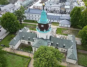 The city is situated between two small rivers, the Muchawka and the Helenka, around 90 kilometres (56 mi) east of Warsaw.[3] It is the fourth largest city of the Masovian Voivodeship, and the seat of the Roman Catholic Diocese of Siedlce. Siedlce is a local educational, cultural and sports center, with a university, a notable rugby club and two important museums. It also hosts a garrison of the Polish Armed Forces.