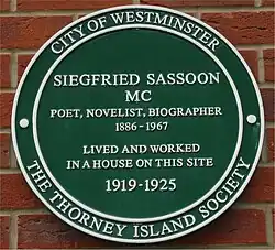 - ^ Self, Cameron. "Siegfried Sassoon 1886–1967". poetsgraves.co.uk. Archived from the original on 15 May 2021. Retrieved 20 April 2017.