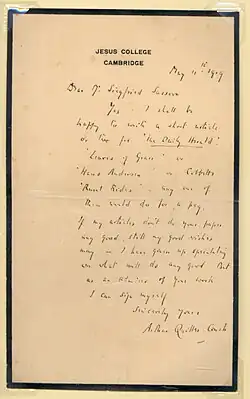 - ^ Collett-White, Mike (17 December 2009). "Cambridge acquires anti-war poet Sassoon's papers". Retrieved 31 December 2009.