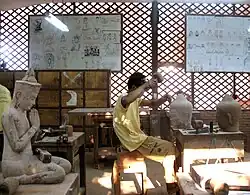 Artisans Angkor is a semi-public company founded in 1992 which aims to revive traditional Khmer craftsmanship and provide employment for rural artisans. It is also associated with a silk farm where visitors may learn about sericulture and weaving.[27] It also participates in the restoration of historical Angkor sites by repairing and replacing damaged sculptures.[28]