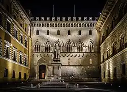 The Palazzo Salimbeni, located in a piazza of the same name, was the original headquarters and remains in possession of the Monte dei Paschi di Siena, one of the oldest banks in continuous existence in Europe.