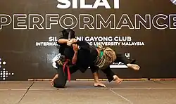 Silat is the collective term for a class of martial arts from the Nusantara and surrounding geocultural areas of Southeast Asia. It is traditionally practised in Brunei, Indonesia, Malaysia, Singapore, southern Thailand, southern Philippines and southern Vietnam.[1] There are hundreds of different styles (aliran) and schools (perguruan) which tend to focus either on strikes, joint manipulation, weaponry, or some combination thereof.
