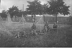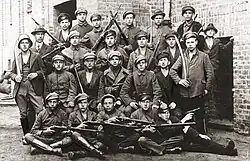The majority of the men serving in the para-military forces on both sides were veterans of the First World War and were experienced soldiers, accustomed to fighting and killing.[16] In addition, most of the men serving on the German side had served in the Freikorps ("Free Corps"), units of volunteers raised by the government to fight against the possibility of a Communist revolution.[16] Most of the men serving on the Polish side had previously served in the German military during World War One.[17]