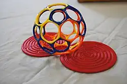 Formerol is a silicone rubber (marketed as Sugru) used as an arts-and-crafts material, as its plasticity allows it to be molded by hand like modeling clay. It hardens at room temperature and it is adhesive to various substances including glass and aluminum.[25]