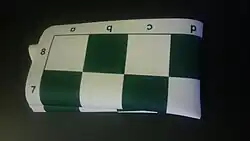This silicone rubber folding chessboard resists creasing and wrinkling.