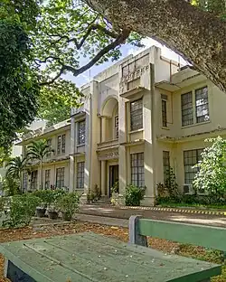 Enrollment in the school grew attracting students from other Asian countries.[22] In 1909, Silliman Institute was visited by US Vice President Charles W. Fairbanks.[23] In 1910, it was awarded government recognition and the right to grant a degree. In the same year, it was incorporated under the laws of the Philippines. Women began to be admitted in 1912, with Pura Blanco as its first female student, and in 1921, the Silliman Bible School (later to become the Divinity School) was established in cooperation with the American Board of Commissioners for Foreign Missions, which largely represented the Congregational Churches of the United States. As enrollment in the institution continued to grow, a corresponding increase in faculty followed. These developments were accompanied by the adoption of a more advanced curriculum and the construction and acquisition of more permanent buildings and equipment. Of note was Emilio Aguinaldo's decision to send his sons to Silliman Institute.[24] By 1925, it was already recognized as "the most influential Protestant institution of higher learning" in the Philippines, according to a report submitted by the Board of Educational Survey, which was created by the Philippine Legislature to conduct a study on all educational institutions in the country.[25] The institute was re-incorporated in 1935, and in 1938 became the first school outside of Manila to be granted university status.[22]