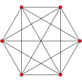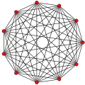 These Petrie polygons (skew orthogonal projections) show all the vertices of the regular simplex on a circle, and all vertex pairs connected by edges.