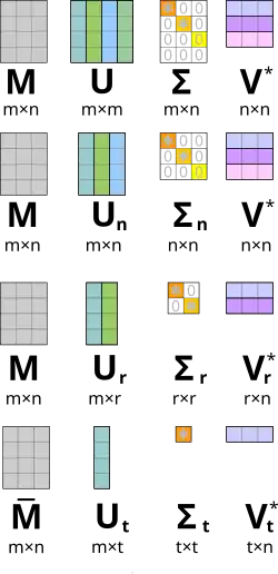 In linear algebra, the singular value decomposition (SVD) is a factorization of a real or complex matrix into a rotation, followed by a rescaling followed by another rotation. It generalizes the eigendecomposition of a square normal matrix with an orthonormal eigenbasis to any matrix. It is related to the polar decomposition.