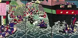 After French difficulties in Taiwan, new attempts at negotiating an alliance were made with the Minister General Campenon meeting with General Miura Gorō, but Gorō remained ambiguous, encouraging France to continue to support Japan's drive for Treaty revision.[89] Hopes for an alliance were reawakened in December 1884 when a clash occurred between China and Japan in Korea, when Japan supported the Gapsin coup d'état by Kim Ok-gyun against the pro-Chinese Korean government, prompting Ferry to request the French ambassador in Japan, Joseph Adam Sienkiewicz, to approach the Japanese government with an offer.[90] Sienkiewicz however remained extremely negative to the point of refraining from communicating Ferry's proposal.[91] French interest faded in 1885 as the campaign in Tonkin progressed, while, on the contrary Japanese interest increased as the Japanese government and public opinion started to favour open conflict with China.[92] The Sino-French War ended however without an alliance coming to fruition.[93]