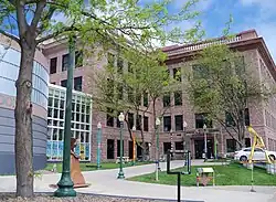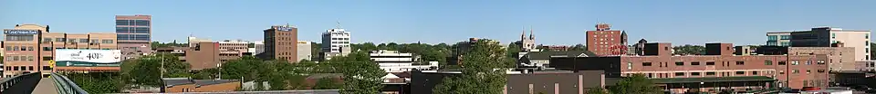 Sioux Falls skyline as seen from Falls Park Old Minnehaha County Courthouse Washington Pavilion of Arts and Science Denny Sanford Premier Center Augustana University | |