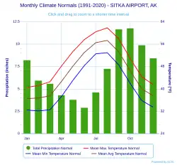 - ^ "U.S. Climate Normals Quick Access – Station: Sitka, Airport (1991–2020)". National Oceanic and Atmospheric Administration. Archived from the original on May 6, 2023. Retrieved February 15, 2023.