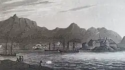 Russian explorers settled Old Sitka in 1799, naming it the Fort of Archangel Michael (Russian: форт Архангела Михаила, romanized: Fort Arkhangela Mikhaila). The governor of Russian America, Alexander Baranov, arrived under the auspices of the Russian-American Company, a colonial trading company chartered by Russian emperor Paul I. In June 1802, Tlingit warriors destroyed the original settlement, killing many of the Russians, with only a few managing to escape.[7]: 37–39 Baranov was forced to levy 10,000 rubles in ransom to Captain Barber of the British sailing ship Unicorn for the safe return of the surviving settlers.[8][9]