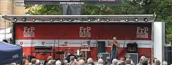 In January 2009, in light of the Gaza War, she held an appeal at a demonstration called "Let Israel live" in support of Israel in Oslo. The Progress Party's general Israel-policy, supported by the appearance at the demonstration by Jensen and the fact that Christian Democratic Party leader Dagfinn Høybråten had not joined the demonstration, resulted in many Christian Democratic voters turning to the Progress Party.[25] Soon after, the Norwegian Police Security Service (PST) went public, fearing that Jensen might be the target of attacks.[26] During the speech, which was held amid the 2008–09 Oslo riots, Jensen and pro-Israel demonstrators were suddenly attacked by violent rioters throwing rocks, and Jensen was forced to leave the podium.[27]