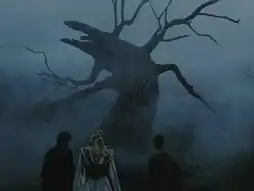 Rudin believed Britain offered the level of craftsmanship in period detail, painting and costuming that was suitable for the film's design.[45] Having directed Batman entirely in Britain, Burton agreed, and designers from Batman's art department were employed by Paramount for Sleepy Hollow.[32] As a result, principal photography was pushed back[46] to November 20, 1998, at Leavesden Film Studios, which had been recently vacated by Star Wars: Episode I – The Phantom Menace.[43] The majority of filming took place at Leavesden, with other work taking place at Shepperton Studios,[28] where the massive Tree of the Dead set was built using Stage H.[10] Production then moved to the Culden Faw Estate, Hambleden[47] for a month-long shoot in March, where the town of Sleepy Hollow was constructed.[28] "We came to England figuring we would find a perfect little town," producer Adam Schroeder recalled, "and then we had to build it anyway." Filming in Britain continued through April,[28] and a few last minute scenes were shot using a sound stage in Yonkers, New York the following May.[29][48]