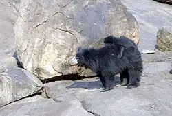 The sloth bear (Melursus ursinus), also known as the Indian bear, is a myrmecophagous bear species native to the Indian subcontinent. It feeds on fruits, ants and termites. It is listed as vulnerable on the IUCN Red List, mainly because of habitat loss and degradation.[1] It is the only species in the genus Melursus.