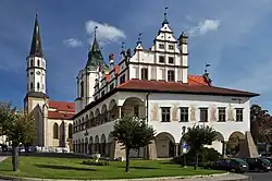 Slovakia is a developed country with an advanced high-income economy. The country maintains a combination of a market economy with a comprehensive social security system, providing citizens with universal health care, free education, one of the lowest retirement ages in Europe and one of the longest paid parental leaves in the OECD.[17] Slovakia is a member of the European Union, the eurozone, the Schengen Area, the United Nations, NATO, CERN, the OECD, the WTO, the Council of Europe, the Visegrád Group, and the OSCE. Slovakia is also home to eight UNESCO World Heritage Sites. The world's largest per-capita car producer, Slovakia manufactured a total of 1.08 million cars in 2023, representing 44% of its total industrial output.[18]