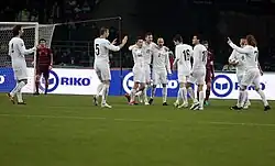 Slovenian players celebrating Nejc Pečnik's goal against Russia in the 2010 World Cup play-offs.