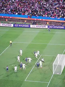 At the World Cup, Slovenia played in Group C alongside England, Algeria and the United States. In the opening game against Algeria, Slovenia achieved its first ever World Cup win after Robert Koren scored the only goal in the match.[46] In their second game against the United States, Slovenia were leading 2–0 at half-time with goals from Valter Birsa and Zlatan Ljubijankić, however, Landon Donovan and Michael Bradley scored in the second half for the United States.[47] In their last match of the group stage, Slovenia lost to England 1–0 with a goal by Jermain Defoe. As the United States defeated Algeria with a late goal, Slovenia dropped to third place and were eliminated from the tournament.[48]