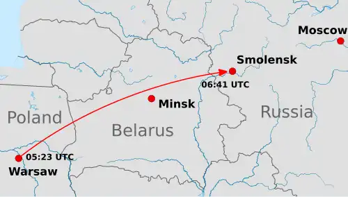 Flight PLF101[19] took off from Warsaw at 9:27 Smolensk time after a delay of 27 minutes.[13]