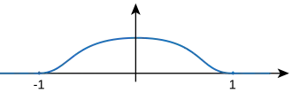The bump function is smooth, so of class C, but it is not analytic at x = ±1, and hence is not of class Cω. The function f is an example of a smooth function with compact support.
