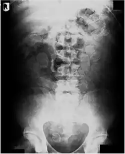 X-ray of an abdomen piled up with cocaine