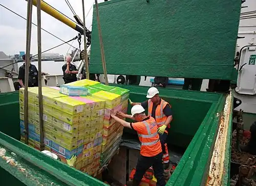 At Border checkpoints, especially for shipping cargo, Border agents must inspect cargo for smuggled and illegal goods. However, because of what is called Gridlock a maximum of 5% inspections per cargo holds worldwide.[35] Since it can take a proper and complete inspection four to six hours, major global trade routes such as Singapore offer great opportunity for smugglers and traders alike. As the leading Cape Town Customs Official argues, if a shipping port stops and inspects every ship it would cause a total shipping grid lock, which is trade gridlock, which is also economic gridlock.[36] By under-declaring and misrepresenting, even the most surprising goods is common practice when smuggling. What popular culture does not communicate, is that illegal drugs and arms are not the bane of customs officers and the ultimate threat to their economy. In reality, the most commonly smuggled items are everyday items one believes to be common and thus causes higher losses in tax revenue. An anonymous shipping agent said that smuggling becomes second nature to businessmen, taking finished products and misrepresenting them to offer the cheapest possible rate. What the majority of people do not realize, is that the media and popular culture focus on criminal organizations as primary smugglers, but in reality legitimate businesses are the biggest offenders.[37] By incorporating their label on merchandise or products, it leaves bias towards their goods as the popular media portrays them as reliable. Smuggling, however, is produced through the very culture of the shipping industry and is affected by institutionalized tariffs and taxes around the world.[38]