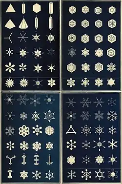 Micrography of thousands of snowflakes from 1885 onward, starting with Wilson Alwyn Bentley, revealed the wide diversity of snowflakes within a classifiable set of patterns.[27] Closely matching snow crystals have been observed.[28]