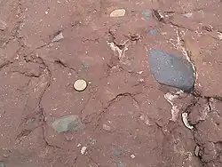 - Diamictites (poorly sorted conglomerates). Originally described as glacial till, most were in fact formed by debris flows.[18]