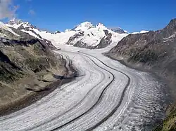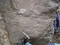 - Glacial striations (formed by embedded rocks scraped against bedrock): similar striations are from time to time formed by mudflows or tectonic movements.[32]