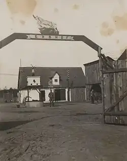 Lager II was a larger multi-purpose compound. One subsection called the "Erbhof" contained the administration building, as well as a small farm.[42] The administration building was a pre-war structure previously used by the local Polish forestry service.[34] As part of the camp, this building was adapted to provide accommodation for some SS officers, storage for goods stolen from victims' luggage, as well as a pharmacy, whose contents were also taken from victims' luggage.[43][34] On the farm, Jewish prisoners raised chickens, pigs, geese, fruits and vegetables for consumption by the SS men.[42]