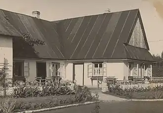 The Vorlager (front compound) contained living quarters and recreational buildings for the camp personnel. The SS officers lived in cottages with colorful names such as Lustiger Floh (the Merry Flea), Schwalbennest (the Swallow's Nest), and Gottes Heimat (God's Own Home).[33] They also had a canteen, a bowling alley, a hairdresser, and a dentist, all staffed by Jewish prisoners.[34][35] The watchmen, drawn from Soviet POWs, had separate barracks, and their own separate recreational buildings, including a hair salon and a canteen.[36]
