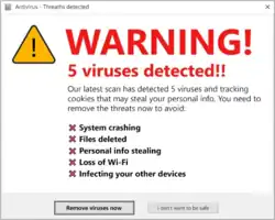 The victim is bombarded with multiple messages about fake threats and alerts, making them think that the system is infected with malware. Thus, attackers force them to install remote login software or other malicious software. Or directly extort a ransom, such as offering to send a certain amount of money in cryptocurrency in exchange for the safety of confidential videos that the criminal has, as he claims.[18]
