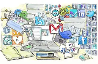 A 2015 study shows that 85% of people aged 18 to 34 use social networking sites for their purchase decision making. While over 65% of people aged 55 and over-rely on word of mouth.[62] Several websites are beginning to tap into the power of the social networking model for philanthropy. Such models provide a means for connecting otherwise fragmented industries and small organizations without the resources to reach a broader audience with interested users.[63] Social networks are providing a different way for individuals to communicate digitally. These communities of hypertexts allow for the sharing of information and ideas, an old concept placed in a digital environment. In 2011, HCL Technologies conducted research that showed that 50% of British employers had banned the use of social networking sites/services during office hours.[64][65]