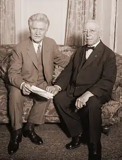 In the first decades of the 20th century, the SPA drew significant support from many different groups, including trade unionists, progressive social reformers, populist farmers and immigrants.[4] Eugene V. Debs twice won over 900,000 votes in presidential elections (1912 and 1920), while the party also elected two U.S. representatives (Victor L. Berger and Meyer London), dozens of state legislators, more than 100 mayors, and countless lesser officials.[5] The party's staunch opposition to American involvement in World War I, although welcomed by many, also led to prominent defections, official repression, and vigilante persecution. The party was further shattered by a factional war over how to respond to the October Revolution in the Russian Republic in 1917 and the establishment of the Communist International in 1919—many members left the Socialist Party to found Leninist parties including the Communist Party USA.