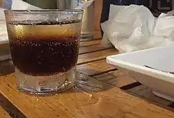 While soju is traditionally consumed straight, a few cocktails and mixed drinks use soju as a base spirit. Beer and soju can be mixed to create somaek (소맥), a portmanteau of the words soju and maekju (맥주 beer).[70] Flavored soju is also available. It is also popular to blend fruits with soju and to drink it in "slushy" form.[71] Another very popular flavored soju is yogurt soju (요구르트 소주), which is a combination of soju, yogurt, and lemon lime soda.[72]