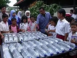 Solar water disinfection (SODIS) involves exposing water-filled plastic polyethylene terephthalate (PET) bottles to sunlight for several hours.[49] Exposure times vary depending on weather and climate from a minimum of six hours to two days during fully overcast conditions.[50] It is recommended by the World Health Organization as a viable method for household water treatment and safe storage.[51] Over two million people in developing countries use this method for their daily drinking water.[50]