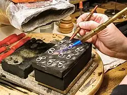 Another difference between brazing and soldering is how the solder is applied. In brazing, one generally uses rods that are touched to the joint while being heated. With silver soldering, small pieces of solder wire are placed onto the metal prior to heating. A flux, often made of boric acid and denatured alcohol, is used to keep the metal and solder clean and to prevent the solder from moving before it melts.