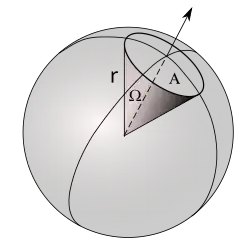 where is the area (of any shape) on the surface of the sphere and is the radius of the sphere.